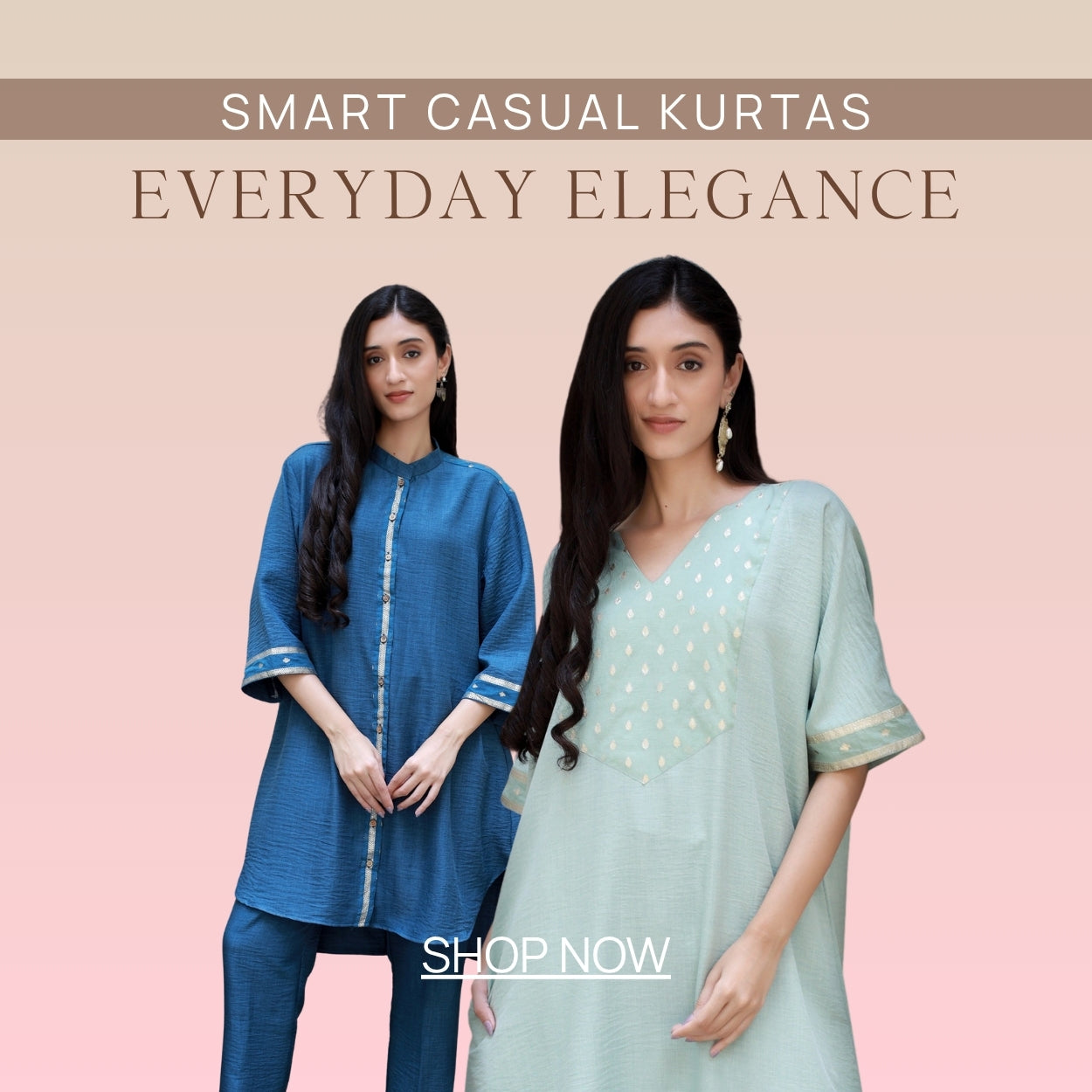 Handblock-printed cotton kurta featuring delicate neck detailing. Lightweight, breathable, and perfect for everyday elegance.